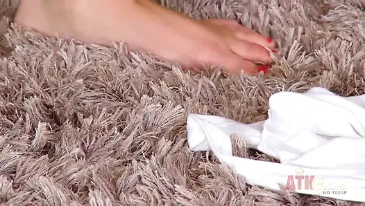 Blonde Girl Having Fun with Her White Panties